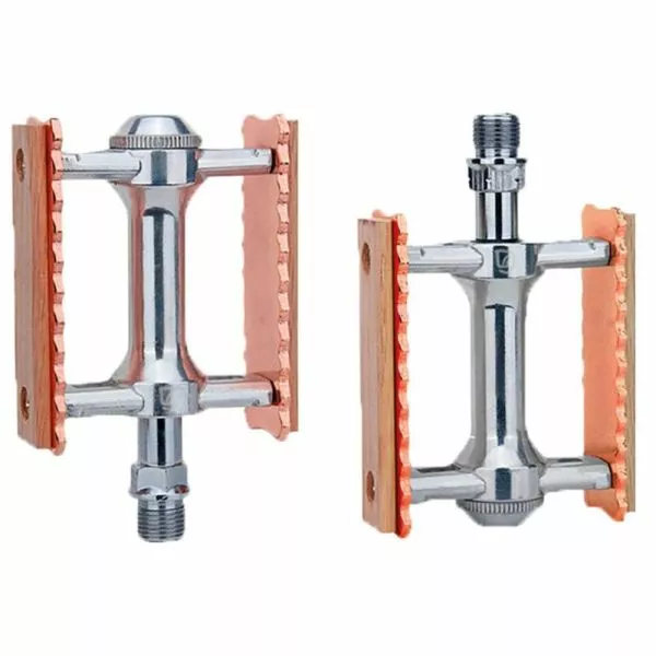 BRAVE-pedal “Retro” Mod. 19, industrielt lejet Retro Race-pedal med træbeklædning, smedet aluminiumskrop, CrMo-aksel, med fræset aluminiumsramme, med to forseglede lejer, vægt ca. 380 g